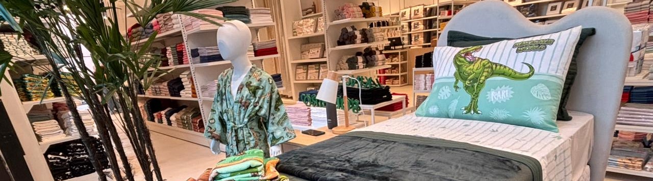 Espaço amplo, conta com produtos de cama, mesa, banho, artesanato e decoração